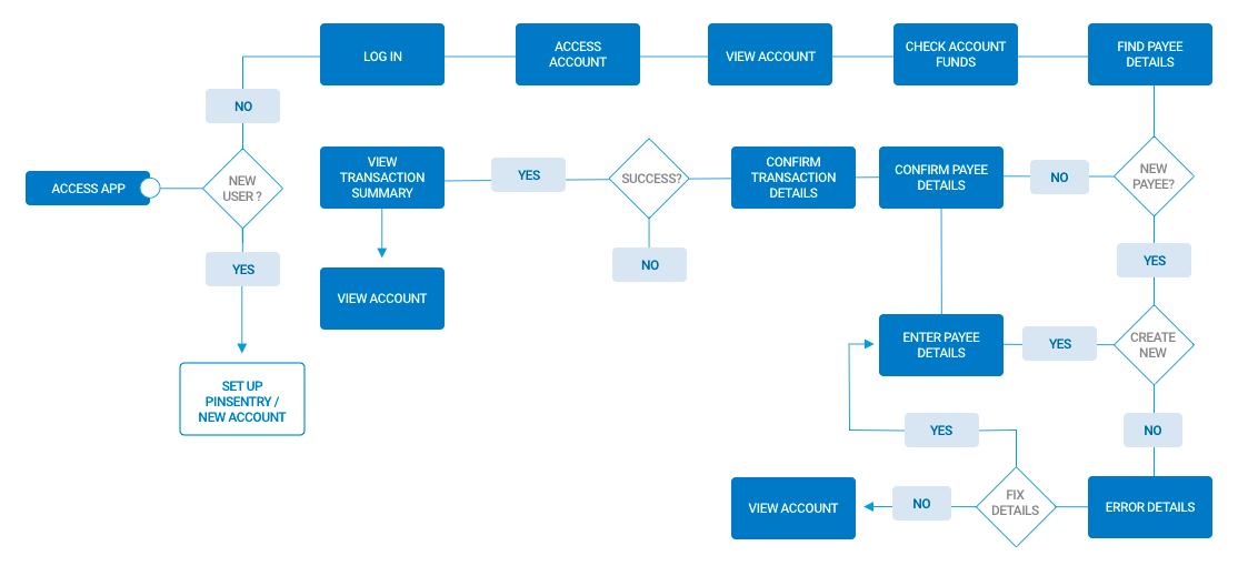 Thru one on one interviews, reading reviews, market & competitive research, we were able to come up with a list of what users needed, what their pain points were, and what they liked in our mobile app. The biggest take away was - UK banking is quite a bit more complicated that what we were used to in the US