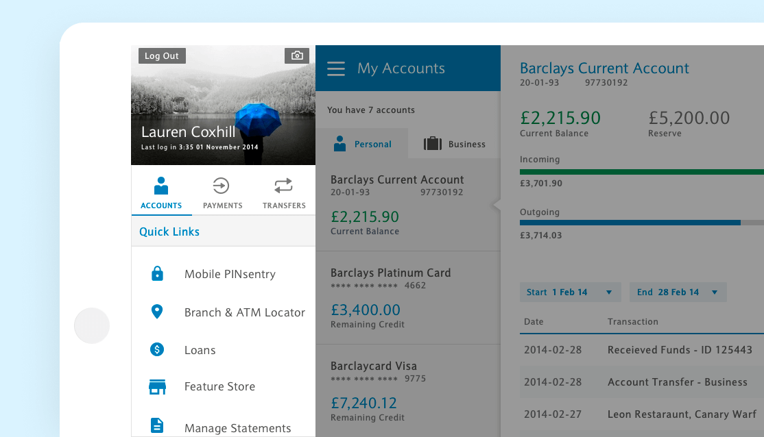 Barclays is a British multinational investment bank offering business and consumer financial services. Our iOS application had just launched, and we needed to create an ipad specific version to meet our users personal and business banking needs